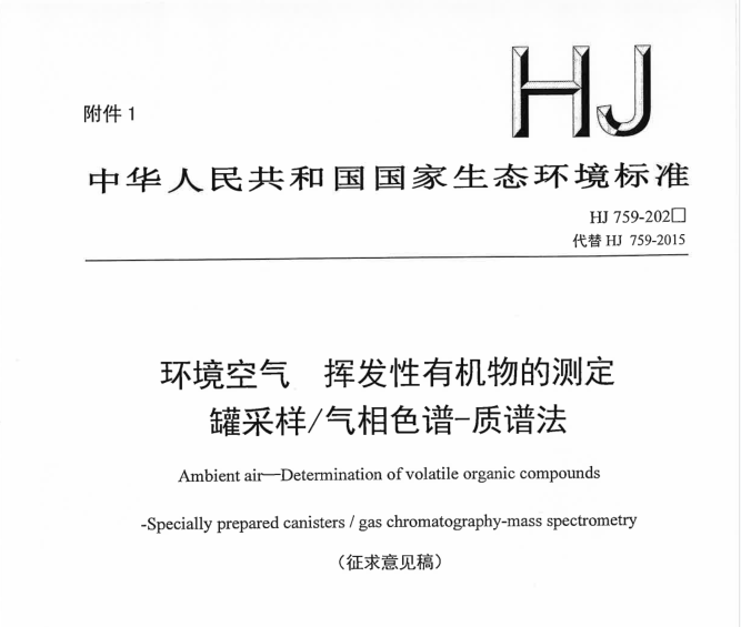 • 《環(huán)境空氣 揮發(fā)性有機(jī)物的測定 罐采樣/氣相色譜-質(zhì)譜法》迎 2021-03-19